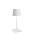 Poldina mini pro is a rechargeable table lamp with contact charging base and painted aluminum body.